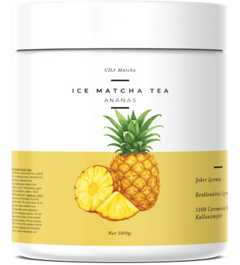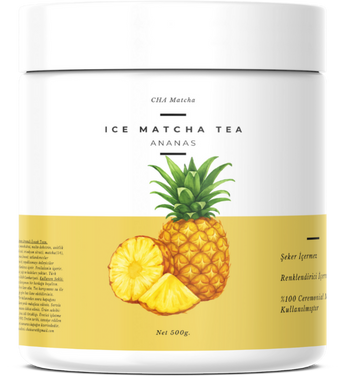 Sadece toz karışımının üstüne 250ml soğuk su ekleyin ve Ananas aromalı Ice Matcha Tea'niz hazır. Rengini doğal matcha renginden alır. Şeker ve renklendirici içermez.