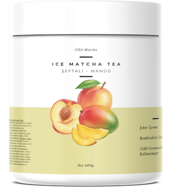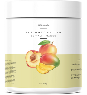 Sadece toz karışımının üstüne 250ml soğuk su ekleyin ve Mango ve Şeftali aromalı Ice Matcha Tea'niz hazır. Rengini doğal matcha renginden alır. Şeker ve renklendirici içermez.