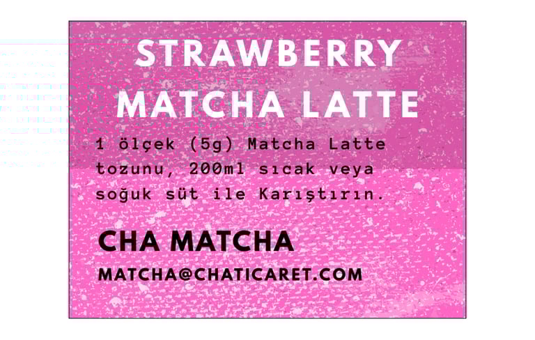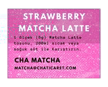 Sadece toz karışımının üstüne 200ml soğuk veya sıcak süt ekleyin. Çilek aromalı Matcha Latte'niz hazır. Rengini doğal matcha renginden alır. Renklendirici içermez.